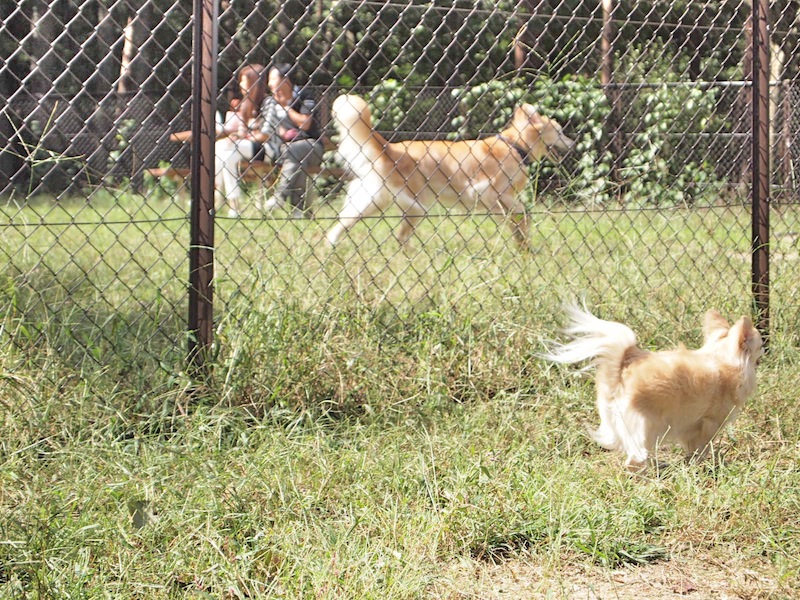 メルはフェンス越しに大きなワンちゃんとかけっこしてとっても楽しそう♪