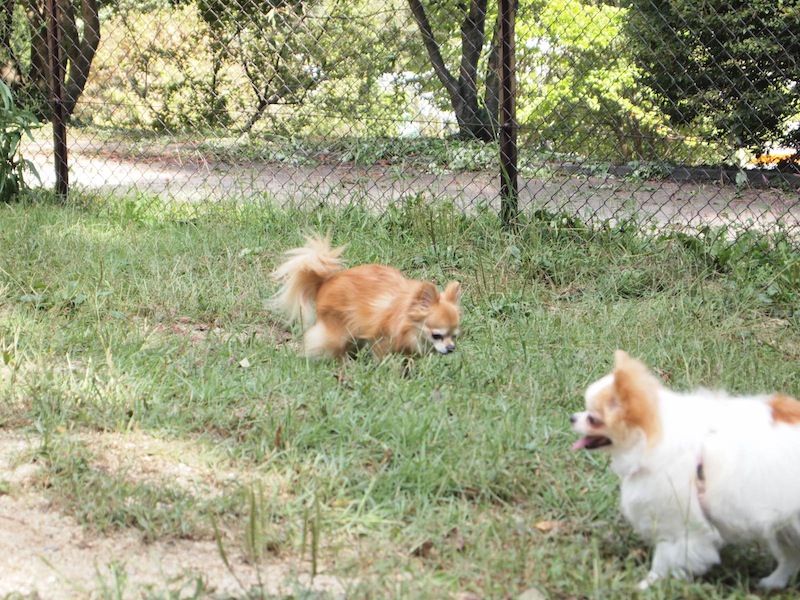 朝露で芝生が少し濡れてたけど、みんな楽しそうに走り回っていました。