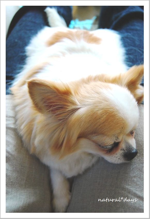 チロルとは正反対に私の足の間にすっぽり挟まって