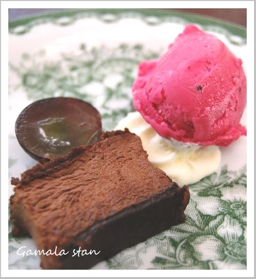 デザートはカシスのアイスとチョコレートムース。