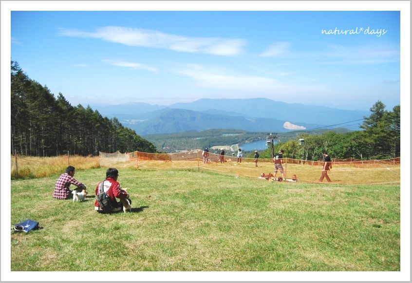 夏のスキー場は芝が広がっていて、わんこたちの格好の遊び場