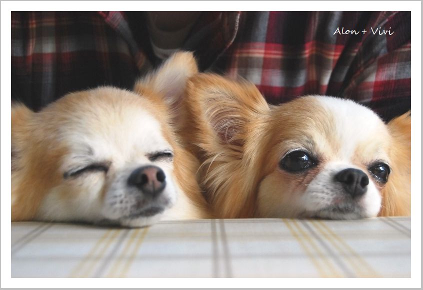 お料理が出てくるのを待っている間、ヴィヴィとアロンはパパのお膝でまったり。