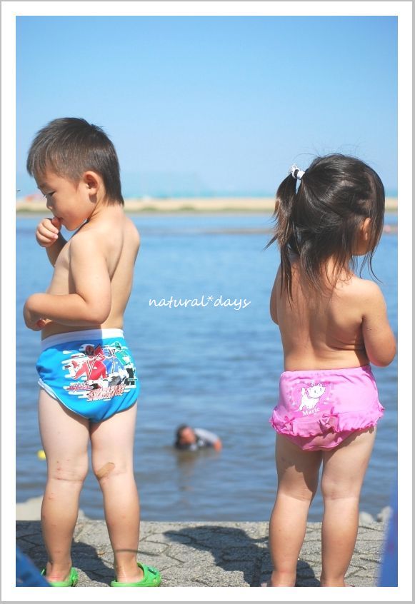 かわいいパンツ姿の かいくんとみーちゃん。