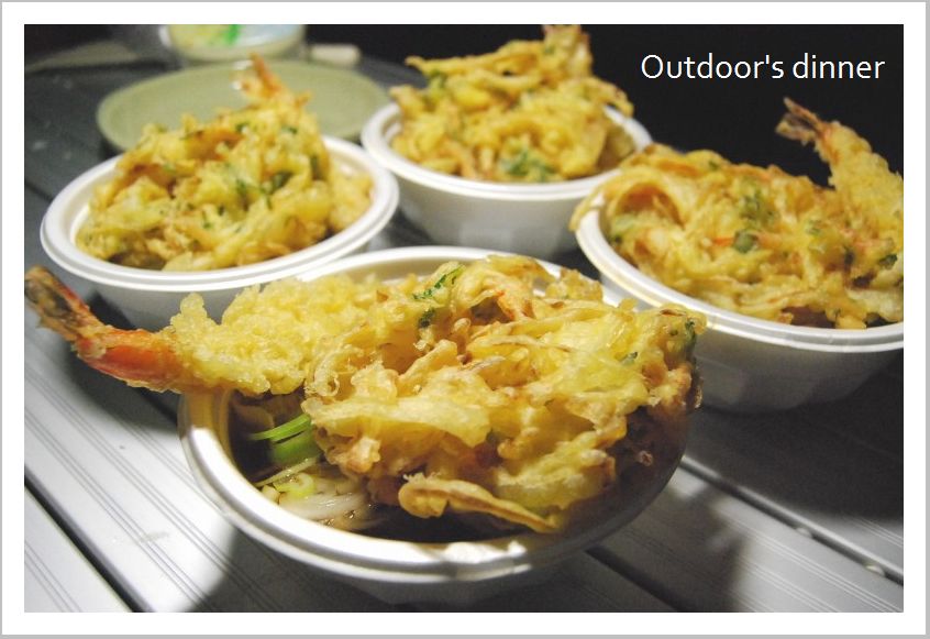 アウトドアでこんなにおいしい熱々の天ぷらそばが食べられるとは思いませんでした!!