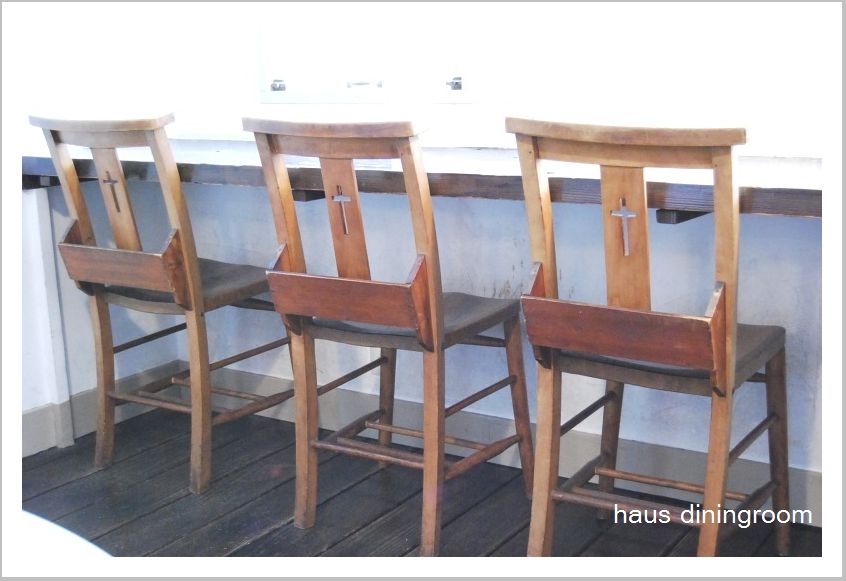 ここには憧れのチャーチチェアが並ぶカウンタ席があるし