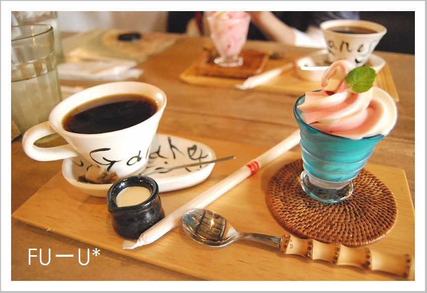 カフェではおやつに季節のソフトクリームとコーヒーをいただきました