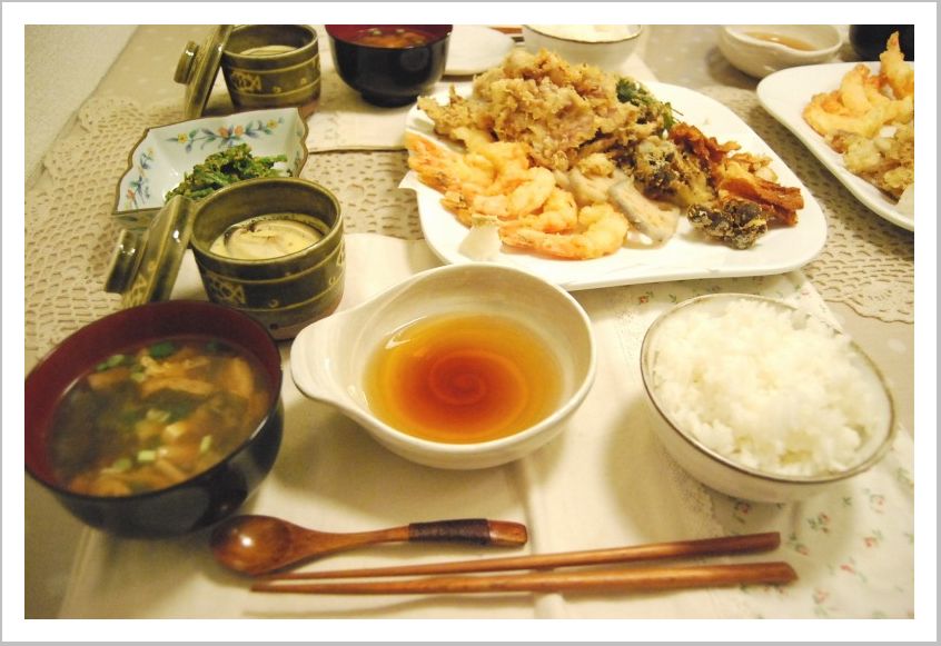 メインの天ぷらはパパが油がはねて