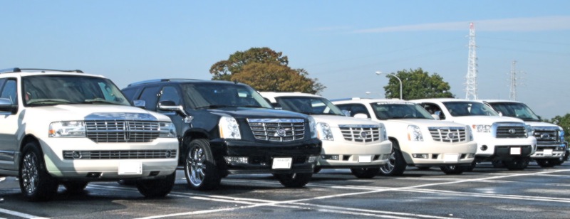 左から3番目がJACKのママさんたちの愛車「エスカレード」、かっこいいです。