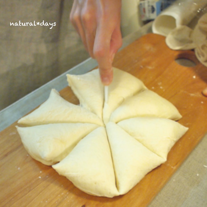 JACKのママさんにパン生地をカットしてもらい形を作りました。