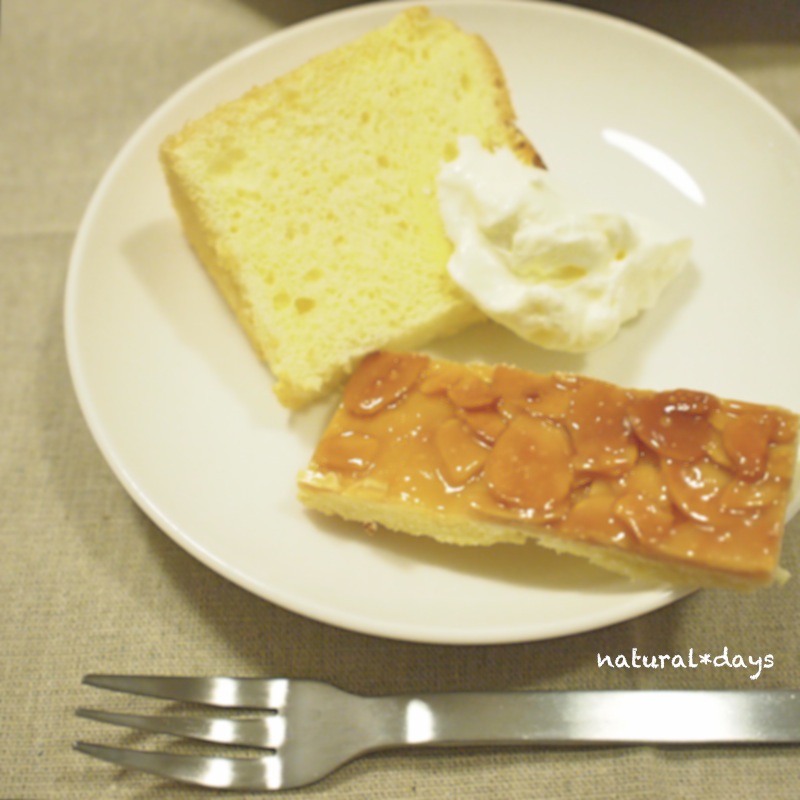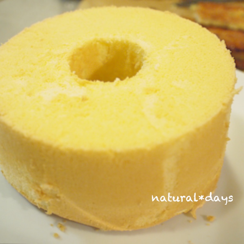型抜きも成功して ふんわりおいしく焼き上がったシフォンケーキ。