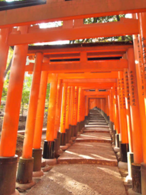 ほとんど隙間がないくらいびっしりと鳥居が立ち並ぶ千本鳥居。
